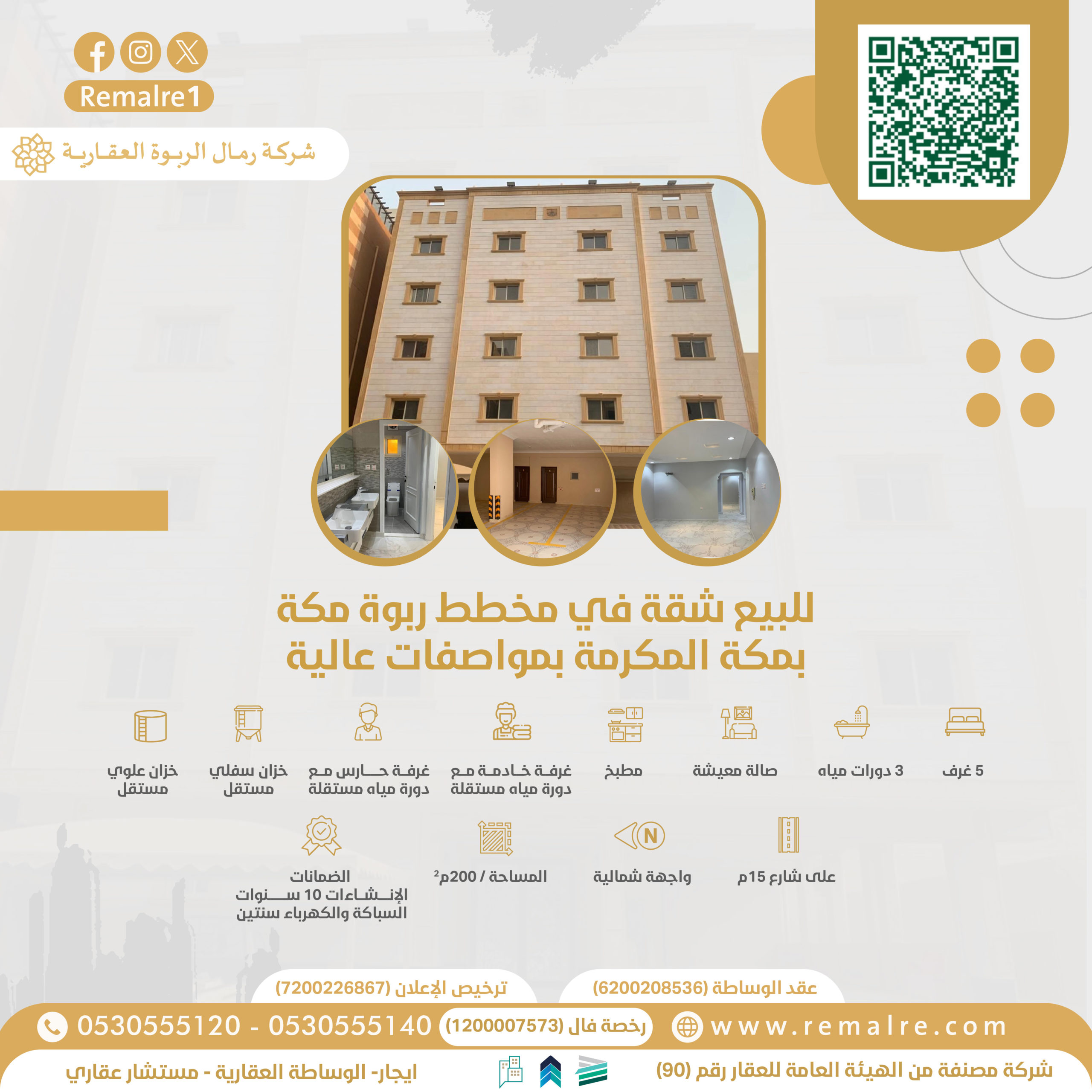 شقق تمليك فاخرة بمخطط ربوة مكة في مكة المكرمة بمساحات مختلفة
